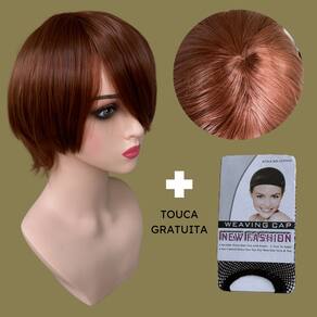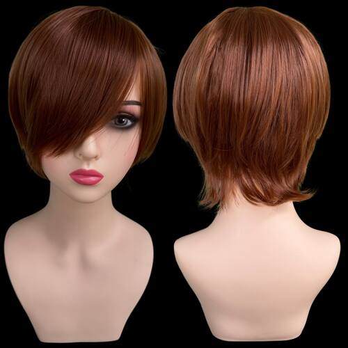 Peruca curta repicada lisa media cosplay personagem anime - Cor: Castanho claro Tatsumi