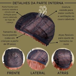 - Tamanho da peruca M (Adapta-se bem a maioria dos tamanhos de cabeça).
