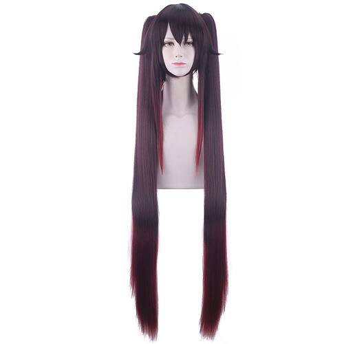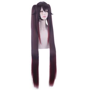 Material: fio de alta temperatura Tamanho: 120 cm, adequado para a maioria dos adolescentes, crianças e adultos Peso: 600 g Design elegante de rabo de cavalo duplo — apresenta rabos de cavalo duplos ultralongos de 120 cm em gradiente de marrom escuro a vermelho, capturando uma aparência vívida inspirada em anime com franja macia em camadas.