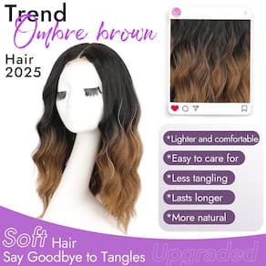 Eawwii Peruca curta ondulada para mulheres, peruca de renda marrom ombré, estilo bob, sintético, resistente ao calor - aparência natural para penteados todos os dias 45,7 cm - Wig Description:Our ombre brown wavy wig for women is made of heat-resistant synthetic fibers, with soft and comfortable hair texture, using a new upgraded process to make the wig more natural and easy to wear.No tangling or shedding - Upgraded Hair: The HD lace is used on the front of the forehead to enhance the realism of the hairline. It's real glueless design and lightwight, no damage to the scalp. Save your precious time, beignners friendly - Wig Styles: Discover the charm of medium length wavy wigs, follow the trends of hairstyles, diverse colors and classic fashion curves to meet your desires!You can design a hairstyle that suits you, it's easy and convenient - Wig cap:Women's wig cap with an adjustable elastic band fits most heads(21 to 22.5 inches head circumference)Hair comes with a soft, lightweight, breathable wig cap for comfortable fit and three clips to prevent slippage - Suitable Occasions: This medium length wavy wig is suitable for women of many styles to wear.Such as Dating, Travel,Holidays, Birthdays,Parties,Cosplay,Weddings,and Everyday Life