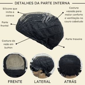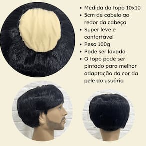 - Fibra kanekalon pet; - 5cm de comprimento dos fios; - Modelo Wig com topo em panol; - Temperatura máxima aceita 130º ; - Tamanho da peruca M (Produto flexível); - 100 gramas em média;