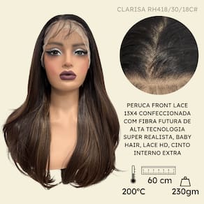 Peruca front lace 13x 60cm morena iluminada RH418/30/18C