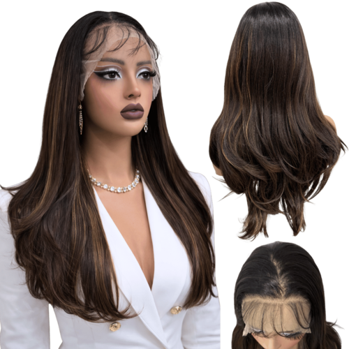 Peruca front lace 13x4 preto morena iluminada futura 60cm - Cor: RH418/30/18C