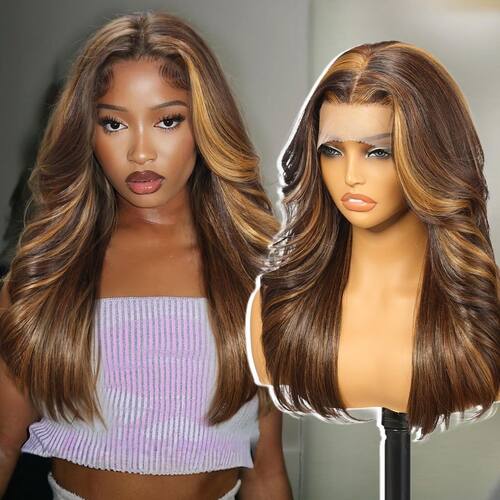 KOME Peruca frontal de renda sintética com destaque marrom, 13 x 15 HD, longa, sem cola, para uso diário feminino 50 cm (F4/27/30) - "SilkRoot Fiber – Parece o cabelo do seu Bio BFF! Nosso revestimento de proteína de seda bio-projetado imita cutículas reais – 87% em testes cegos não conseguiram distinguir do cabelo real! Diga adeus à vergonha do plástico, olá para 'Você recebeu um tratamento de queratina?' elogios." - Sem cola? Deusa! 8 horas à prova de academia para happy hour" rede de memória elástica + aderência de silicone ativada pelo suor = zero drama de cola. Classe de rotação de rocha e margs sem ajustes. Couro cabeludo sensível? Este bebê é mais suave do que sua fronha de seda." - Mega renda 33 x 15 – Parte como um profissional, sem necessidade de salão. A renda HD suíça se estende das hastes até a nuca. Parte do meio? Varrido lateralmente? Coque bagunçado? Mais de 10 estilos em 1. libera 2x mais suor do que renda básica - "Ghosted Knots – Modo furtivo ativado Nosso branqueamento de nó de nível ninja torna as raízes 90% invisíveis. Selfie com lanterna? Chamada de zoom de close-up? Você está servindo a realidade 'I woke up like this'. Garantia Stealth aprovada pela BFF." - Boné 5D ultraconfortável: a touca respirável (53 cm - 57 cm) possui várias tiras de ajuste e 3 clipes na parte superior, traseira e laterais para um ajuste seguro. Desenvolvida com a contribuição de milhares de clientes dos EUA e centenas de testes e melhorias, nossa touca de peruca 5D é projetada para o máximo conforto, estabilidade e compatibilidade.