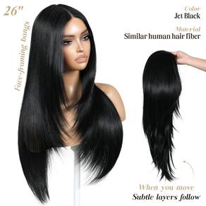 Nome do produto: Peruca em camadas sem cola Material: Fibra de cabelo humano semelhante Comprimento: 66 cm Peso: 280 g Área de renda: 13x5x1 Touca da peruca: Boné atualizado com elástico ajustável (53,3 cm-58,4 cm) Ocasiões: todas Embalagem: 1 peruca, 2 tampas de peruca, manual do usuário, 1 pente de dente largo - Perfeita para todos: uma peruca frontal de renda sintética sem cola, 66 cm oferecendo um visual glamoroso, pesando apenas 240 g, uso durante todo o dia sem pesar. Design adequado para iniciantes acessível para qualquer ocasião - de passeios casuais a eventos especiais - Basta usar e ir: nossas perucas sem cola têm renda pré-cortada que pode alcançar um visual deslumbrante em segundos! A linha do cabelo pré-arrancada imita a aparência do crescimento natural do cabelo. Pré-colorida e pré-estilizada, basta colocá-la e desfrutar de um visual impecável instantaneamente! - Fibras sintéticas premium: perucas frontais de renda sintética ENCOUNTERU usando fibra sintética resistente ao calor que suporta calor até 160° C (160.0 °C). Fácil de pentear, não embaraçar facilmente e perder cabelo, macio e honestamente sentido como cabelo humano, desfrute de estilos deslumbrantes sem comprometer a qualidade! - Touca de peruca sem cola atualizada: a faixa elástica ajustável e os 3 pentes são projetados para se ajustarem com segurança, adequados para a maioria dos tamanhos de cabeça (53 a 58 cm), se você estiver usando por algumas horas ou o dia todo, você apreciará a sensação leve e o ajuste seguro - Serviço caloroso: cada peruca ENCOUNTERU é cuidadosamente testada antes do envio. Se você tiver alguma dúvida sobre a peruca, instalação ou manutenção, não hesite em pedir ajuda