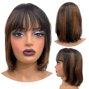 Peruca humana curta bob franja 25cm com lace no topo natural - Cor: Mechas F2/30