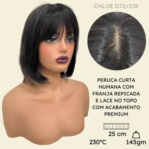 Peruca humana curta bob franja 25cm preta ombre loira DT2/27 - Peruca de cabelo humano curto com franja