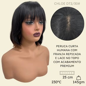 Peruca humana curta bob franja 25cm preta ombre loira DT2/30 - Peruca de cabelo humano curta com franja