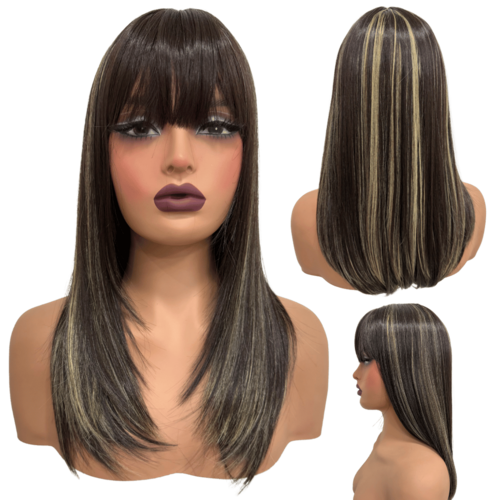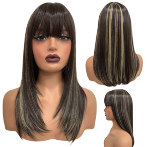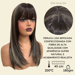 Peruca lisa repicada com franja 45cm preto mechado HL6/24