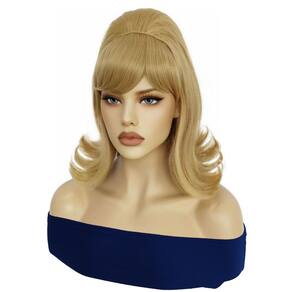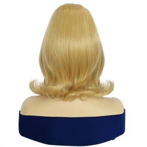 Material: fio de alta temperatura Tamanho: 33 cm/22 polegadas Peso: 320 g Design retrô Peruca loira de 14 polegadas de comprimento médio com pontas retrô clássicas viradas para fora e franja lateral de aparência natural, criando um estilo suave e elegante. Material de seda de alta temperatura Feita de cabelo sintético resistente ao calor, esta peruca pode ser levemente estilizada com ferramentas de baixo calor para uma aparência personalizada. O boné interno respirável e confortável com alças ajustáveis garante um ajuste seguro e confortável para a maioria dos tamanhos de cabeça. [Aplicável a vários cenários] Perfeito para cosplay à fantasia, festas, Halloween, fotos e estilos de moda diários. Efeito natural A fibra realista com textura suave fornece brilho natural e toque macio, aumentando sua confiança.