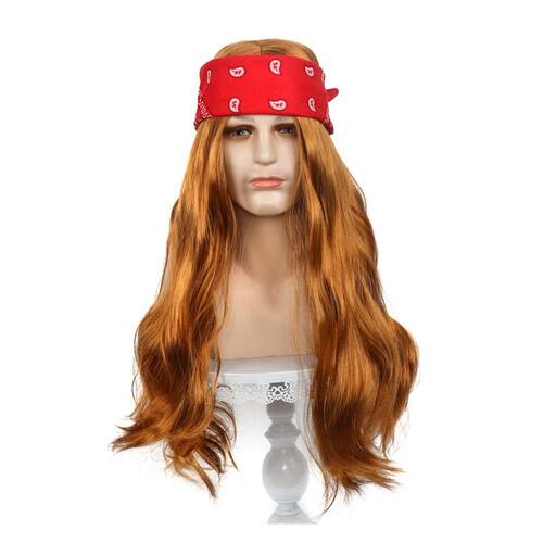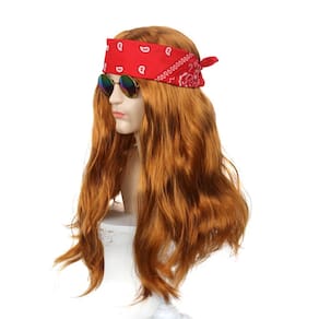 Material: fio K/fio P Tamanho: 12,65 polegadas/55 cm, adequado para a maioria dos adolescentes, crianças e adultos Peso: 180 g Aparência roqueira vintage: esta peruca marrom ondulada com bandana vermelha traz uma atmosfera retrô punk e hippie, tornando-a perfeita para dançar em festivais, festas ou eventos de Halloween.