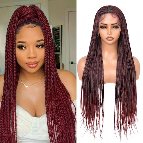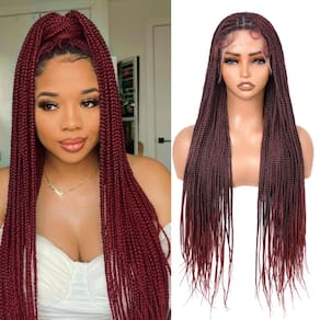 - Peruca trançada de renda completa: a renda é feita de renda transparente suíça, que é respirável e invisível se adapta à sua pele. O design de renda dupla torna seu couro cabeludo mais confortável. A parte quadrada dá à peruca trançada um visual super natural. O cabelo do bebê ao redor faz uma linha natural do cabelo