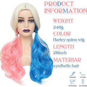 - ?Perucas Harley Quinn?: A peruca Harley Quinn para meninas é feita de material de fibra resistente ao calor de alta qualidade, que é amigo da pele, sedoso, macio e natural. Leve e fácil de usar, novo estilo que economiza tempo.