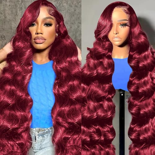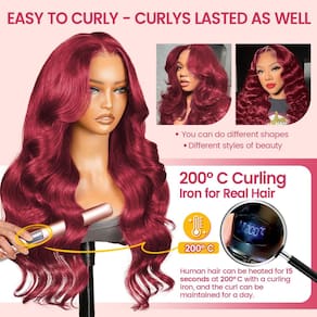 - ?Peruca de cabelo humano ondulada frontal ondulada do corpo 13x6 99J ? Peruca vermelha vinho adequada para ocasiões e cuidados: peruca sem cola de densidade 200 é adequada para estilo diário, casamentos, festas, Halloween, festivais, apresentações de palco, Natal, escola e feriados. Deixa você mais charmosa e confiante. Shampoo e condicionador de alta qualidade, tratá-los como seu próprio cabelo vai durar mais tempo, para evitar queda e emaranhamento, use um pente de dentes largos para pentear.