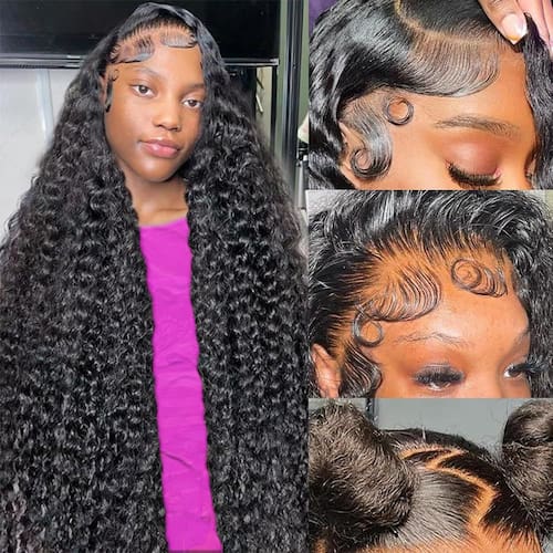 - ?Perucas frontais de renda HD onduladas?: Renda suíça transparente de 33 x 15 cm, macia e respirável, adequada para a maioria das peles, nós fáceis de branquear, fácil de instalar, linha do cabelo natural com cabelo de bebê parece mais natural