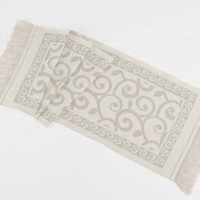 Peseira Decorativa Turin Com Franja 58% Algodão / 42% Poliéster - Arabesco Bege A Peseira Decorativa Turin é o acessório indispensável para conferir um acabamento de luxo à sua cama posta. Confeccionada em tecido Jacquard estampado com acabamento em franjas, ela adiciona uma camada de textura e sofisticação, transformando visualmente o dormitório com elegância e nobreza. Por que escolher este produto? - Tecido Jacquard: Produzida com 58% de algodão, oferecendo um caimento estruturado e toque encorpado. - Acabamento com Franjas: Detalhe artesanal que proporciona charme e um visual clássico refinado. - Estética Premium: Ideal para proteger o enxoval e elevar a decoração com padronagens coordenadas.