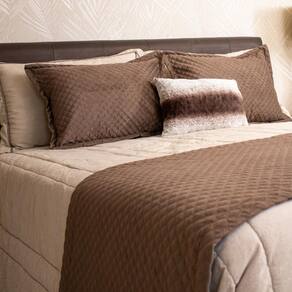 Para completar a cama posta, indicamos o uso de almofadas no formato mais propício a coordenação com a peseira.