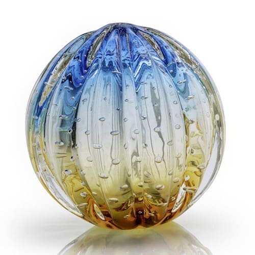 Peso Em Cristal Murano Água Marinha E Âmbar São Marcos 15cm Peso Em Cristal Murano Água Marinha E Âmbar - São Marcos é uma peça decorativa produzida 100% artesanalmente com a técnica secular e originária da Itália, a qual com muita maestria e criatividade são desenvolvidas e preservadas no brasil pela Cristais São Marcos desde 1962.