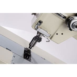 Sistema de barra fixa que trabalha sempre com as duas agulhas paralelas. Máquina Costura Industrial Pespontadeira 02 Agulhas Barra Fixa Direct Drive 220v