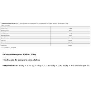 Carne de frango 80%, Carne de fígado de frango 12%, amido de mandioca 4%, carragena 3%, sal 1%, extrato de chá verde 0,02%, vitaminas A, B2, B3, B5, D3, E .