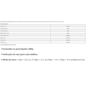 Carne de frango 92%, amido de mandioca 4%, carragena 3%, sal 1%, extrato de chá verde 0,01%, vitaminas A, B2, B3, B5, D3, E .