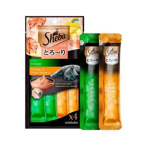 Petisco Sheba Cremoso Para Gatos Sabor Frango e Frango & Peixe Branco 4 Unidades - Indicado para gatos; - Baixo em calorias; - Sem grãos, conservantes ou corantes artificiais; - Textura cremosa e sabores deliciosos que os gatos adoram; - Contém 4 tubos de 12g cada.