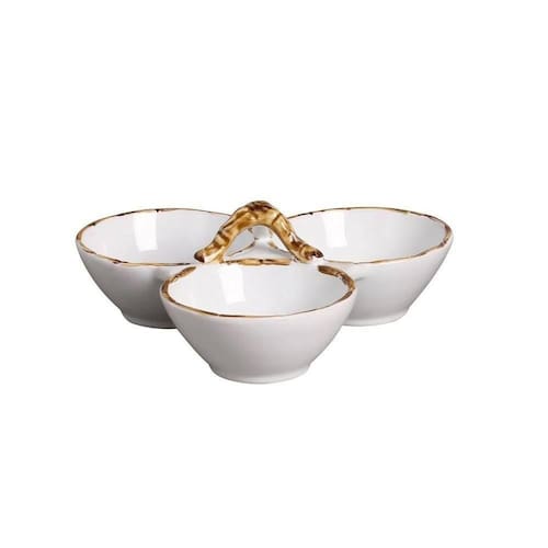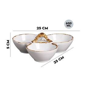 Petisqueira em cerâmica com três divisórias e estampa borda bambu da linha Bambu.