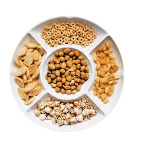A petisqueira possui 5 cavidades, sendo uma central e quatro laterais, permitindo que você sirva uma grande variedade de petiscos ao mesmo tempo. Com um diâmetro de 30 cm e altura de 3 cm, ela é tamanho GRANDE, garantindo espaço suficiente para todas as delícias que você deseja oferecer.