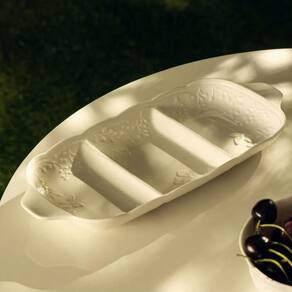 Petisqueira Com 3 Divisórias Em Porcelana Butterfly Flower 34x14,5cm Lyor -