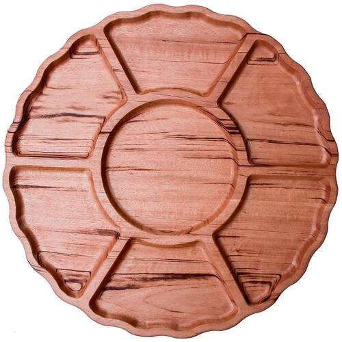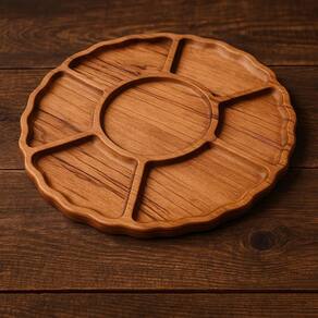 A petisqueira grande une elegância e funcionalidade, sendo ideal para servir petiscos com charme e organização. Produzida em madeira maciça de alta qualidade, possui 7 cavidades estrategicamente posicionadas para acomodar queijos, frios, frutas e snacks. Seu design sofisticado valoriza qualquer ocasião, desde encontros casuais até celebrações especiais.