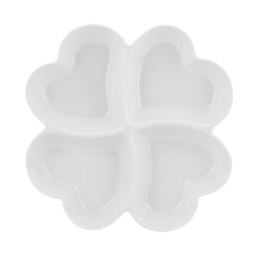 Petisqueira Coração 4 Divisórias Melamina Branca 27cm. Petisqueira Coração 4 Divisorias em Melamina Branca Acabamento impecável, design clean e várias cavidades para montar aquela variedade enorme de petiscos e surpreender seus convidados. Com 4 cavidades, sirva uma grande variedade de petiscos ao mesmo tempo. Produzido em melamina, é super resistente e não tem cantos vivos, facilitando muito a limpeza.