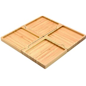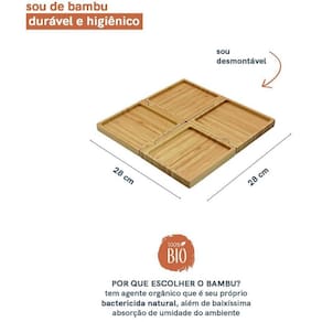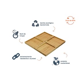 Essa é a petisqueira de bambu quadrado desmontável da OIKOS, que tem a missão de deixar os petiscos ao alcance de todas as mãos! Ela é dividida em 4 partes com encaixes que podem ser reajustadas em diferentes formas, resultando em diferentes figuras. São muitas as combinações - inclusive se você tiver mais de uma. Seu material é de bambu, um antibactericida natural.