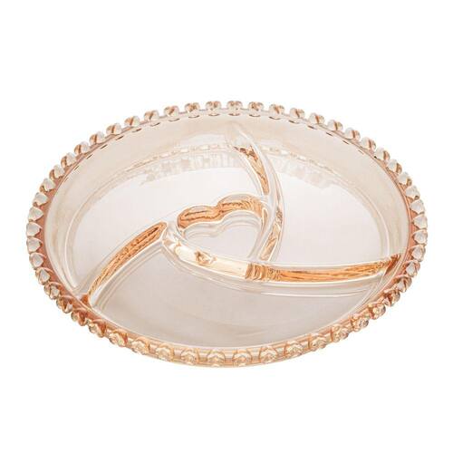 Petisqueira em cristal coração fabricada em cristal âmbar metalizado tem design altamente sofisticado, deixando sua mesa posta mais charmosa e elegante.