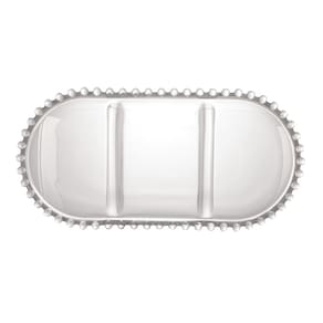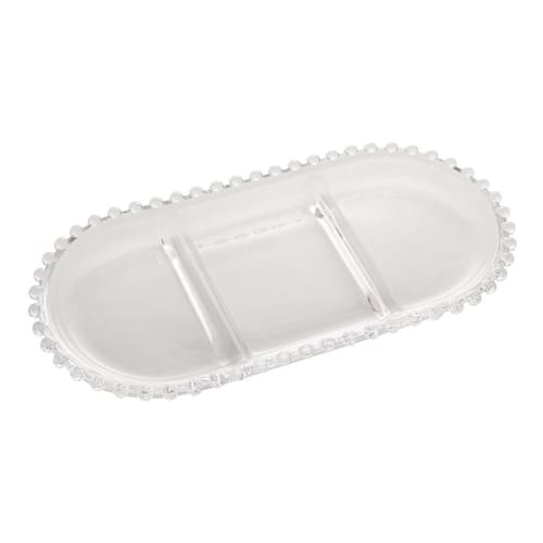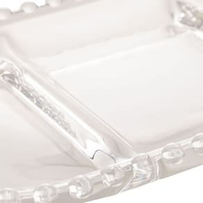 A petisqueira de cristal com três divisões PEARL WOLFF possui lapidação em bolinhas na borda, inspirada na beleza e no brilho único das pérolas. É ótima para receber os convidados para o happy hour pois pode ser utilizada com três tipos diferentes de petiscos.