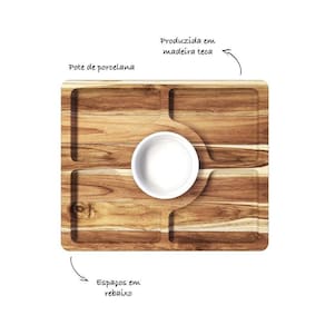 A madeira teca é conhecida há mais de 500 anos, no passado era utilizada na construção naval devido a sua resistência contra água e ações do tempo. Ela se destaca por sua rigidez e coloração variada, motivos estes que elevam seu preço no mercado e a tornam uma madeira nobre em diversos países do mundo. Hoje em dia é utilizada na produção de artigos para decoração, churrasco, entre outros nichos. Estes são alguns dos motivos que fazem a Petisqueira de Madeira Retangular com 5 divisões e 1 Pote um produto especial e indispensável na sua casa.