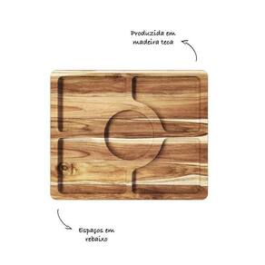 A madeira teca é conhecida há mais de 500 anos, no passado era utilizada na construção naval devido a sua resistência contra água e ações do tempo. Ela se destaca por sua rigidez e coloração variada, motivos estes que elevam seu preço no mercado e a tornam uma madeira nobre em diversos países do mundo. Hoje em dia é utilizada na produção de artigos para decoração, churrasco, entre outros nichos. Estes são alguns dos motivos que fazem a ;Petisqueira de Madeira Retangular com 5 divisões um produto especial e indispensável na sua casa.