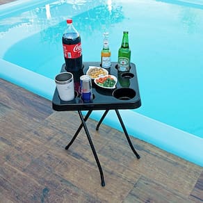 Petisqueira Dobrável Mesa Com Porta Copo Para Piscina Churrasco - Preto