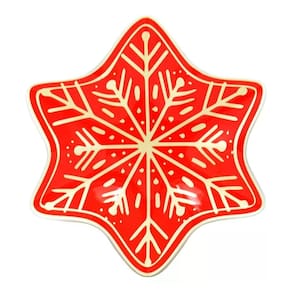 Petisqueira Floco De Neve Vermelho Peça com desenho inspirado na tradição dos biscoitos gingerbread na qual evoca memórias calorosas e um espírito festivo, para trazer ao redor da mesa, a iguaria deste ingrediente que tanto remete a esta época. Além disso, a petisqueira vem na forma de um floco de neve. Pode também ser um belo presente.Peça de vidro, pode ser levado ao microondas, lava louça. Não recomendado levar ao forno.Medidas:C. 20,5 x L.22,5 x A. 2 Cor: Vermelho | Louças e Artigos para Servir: Petisqueira | Produto: Petisqueira | Altura: 25 | Largura: 25 | Peso do Produto: 0.3 Marca: Dela Home