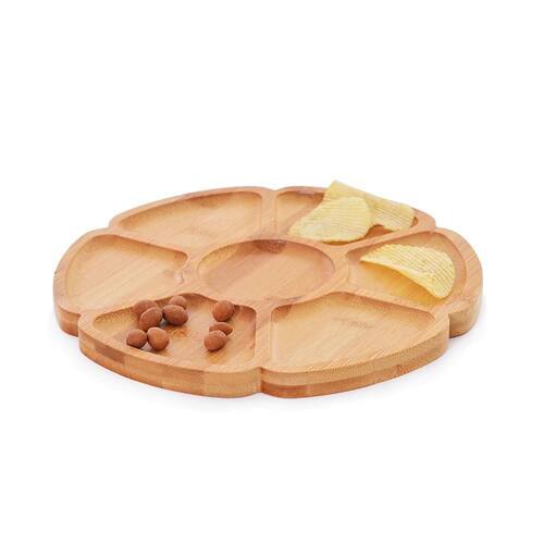 Características: -design Moderno. -funcional. -material: Bambu. -dimensões: 25CM x 25CM x 1,5CM. -formato: Redondo. -possui 7 Divisórias.