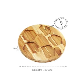 Contêm: 1 Petisqueira Diâmetro: 27 cm Altura: 1,8 cm Material: Madeira Teca Casacha é uma loja especializada em utensílios de cozinha, porta mantimentos e itens de organização.