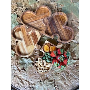 Petisqueira teca trevo e corações 4 divisórias desmontável Cód 24 petisqueira trevo encaixe teca med: 30x30x2cm compr x larg x altu cód de barras: 0618341537545