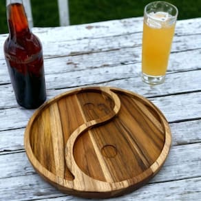 Tábua Petisqueira Yin-Yang de Madeira Teca 2 Divisórias