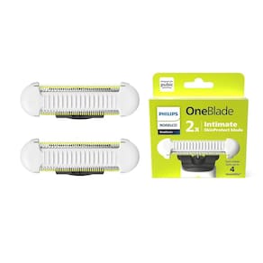 De axilas a púbis, o Philips Norelco OneBlade Intimate foi projetado para suas áreas sensíveis e íntimas. O protetor de pele exclusivo oferece uma camada extra de proteção contra cortes Nossa lâmina SkinProtect oferece uma camada extra de proteção contra cortes e cortes para a pele sensível das axilas e pubianos. Projetado para caber em todas as curvas e cantos - e não muito perto, para maior conforto Com a lâmina de dupla face OneBlade Intimate SkinProtect, você pode facilmente barbear para cima ou para baixo e pentear com confiança. O OneBlade Intimate é totalmente à prova d'água para que você possa fazer a barba na banheira ou no chuveiro, onde preferir - com ou sem espuma de barbear. Enxágue para limpar em água corrente. As lâminas de aço inoxidável duram até 4 meses Contém 1 embalagem com 2 Unidades dos EUA Marca: Não Informado Ean: 075020109187
