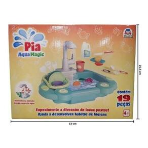 A Aqua Magic é uma mini pia de plástico projetada para crianças brincarem de forma segura e divertida. A pia possui um design colorido e atraente que imita uma pia de cozinha real, com uma torneira. A parte superior da pia contém uma bomba de água manual que permite às crianças encher a cuba com água e simular a lavagem de pratos, talheres e outros objetos de cozinha. A água pode ser facilmente drenada por meio de um plugue localizado na parte inferior da pia. Feita de plástico durável e resistente, é leve e portátil, o que significa que pode ser facilmente movida e guardada quando não estiver em uso.