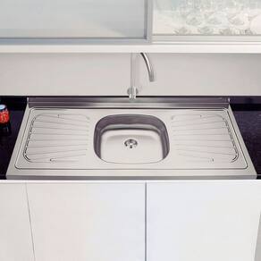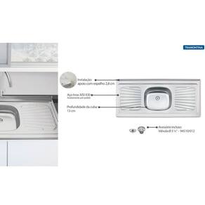 Recomendações de uso: Para um perfeito funcionamento da pia, montar inicialmente a válvula e, após, fixar a pia no gabinete. O aço inox AISI 430 é mais suscetível a corrosão e requer maiores cuidados com a manutenção e limpeza, para garantir a conservação e vida útil do produto. Em regiões litorâneas a Tramontina recomenda o aço inox AISI 304. Remover a etiqueta colada dentro da pia. Limpar a pia com detergentes normais neutros. Usar somente esponja macia ou pano para lavar a pia. Esta peça contém bordas cortantes. Manusear com cuidado. Não usar ácido muriático, água sanitária ou qualquer outro solvente para lavar objetos na pia. Na reforma ou construção, proteger a pia para não deixar sobre a peça pó de cimento ou gesso. Enxaguar e secar bem a peça após o uso. Nunca deixar objetos metálicos sobre a peça por períodos muito longos, para evitar a corrosão. Para manter o brilho da sua pia, recomendamos o uso da pasta para polir e remover manchas em superfícies de aço inoxidável Tramontina. O aço inox AISI 430 é mais suscetível a corrosão e requer maiores cuidados com a manutenção e limpeza, para garantir a conservação e vida útil do produto. Em regiões litorâneas a Tramontina recomenda o aço inox AISI 304.
