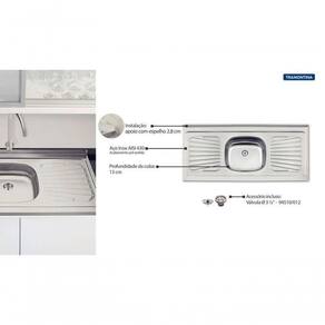 Modo de Uso: Não usar ácido muriático, água sanitária ou qualquer outro solvente para lavar objetos. Na reforma ou construção, proteger a pia para não deixar sobre a mesmo pó de cimento ou gesso. Enxaguar e secar bem a peça após o uso. Nunca deixar objetos metálicos sobre a peça por períodos muito longos, para evitar a corrosão. Para manter o brilho, recomenda-se o uso da pasta para polir e remover manchas em superfícies de aço inoxidável "Tramontina" (94537000). Esta peça contém bordas cortantes, manusear com cuidado.