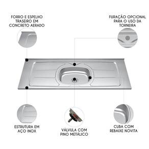 Pia de Cozinha com Cuba e Válvula Bali 140cm Aço Inox - Ghel Plus