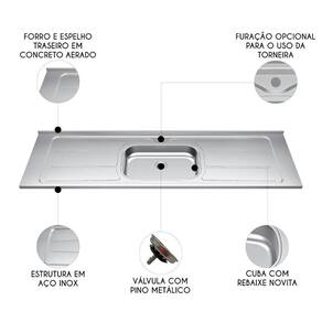 Pia de Cozinha com Cuba e Válvula Bali 200cm Aço Inox - Ghel Plus