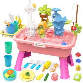- Melhore o tempo de jogo com nosso brinquedo de pia multifuncional 4 em 1! Agora com pernas removíveis, é perfeito para se divertir em pé e na mesa. Este conjunto versátil combina brincadeiras na cozinha, diversão no parque aquático, diversão de pesca e uma pia de trabalho, tudo em um. Com uma capacidade de água expandida de 3L e altura elevada, ele foi projetado para uma experiência confortável e envolvente para crianças de todas as idades.