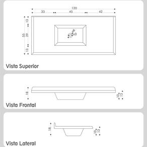Dimensões do Produto: Altura: 18cm | Largura: 120cm | Profundidade: 55cm Tamanho indicado para válvula (não inclusa): bitola de 1 polegada, comprimento aproximado de 4cm. *Você pode consultar as medidas detalhadas na imagem técnica do produto.
